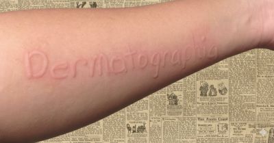 Дермографізм проявляється як нетипова відповідь епідермісу на тертя або натискання. Замість звичайного короткочасного почервоніння з’являється виражений рельєф, що нагадує пухирі.